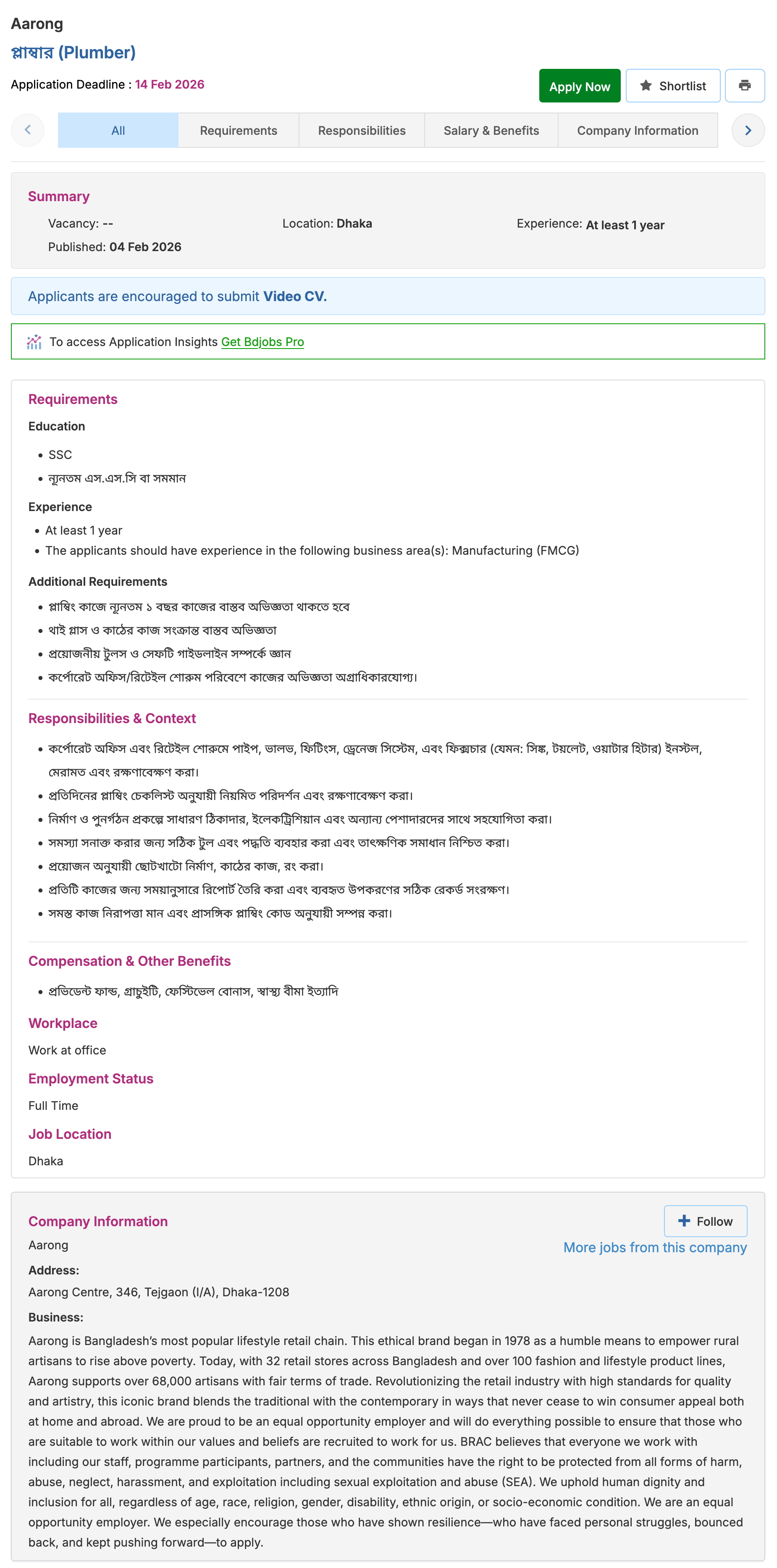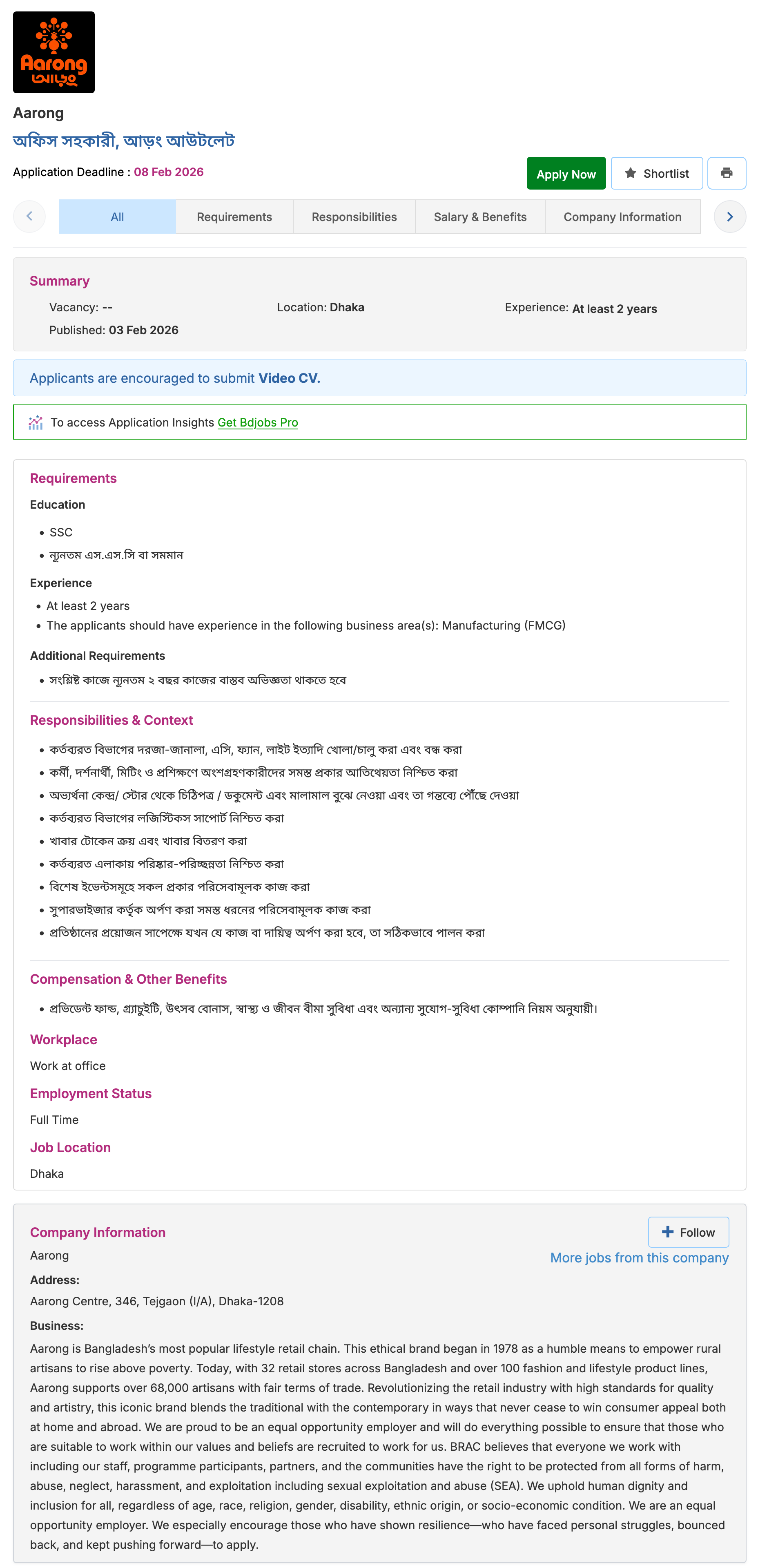 Website: www.aarong.com/careers