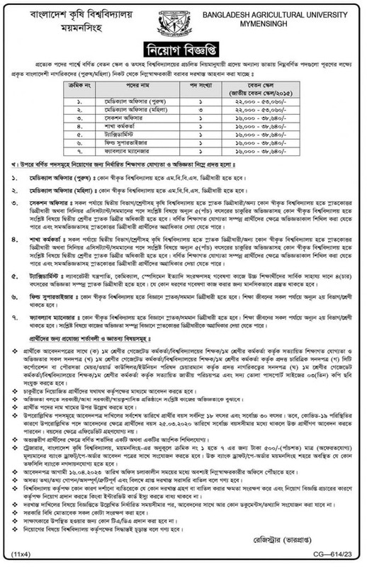The details of the Bangladesh Agricultural University Job Circular 2023 that you have mentioned.