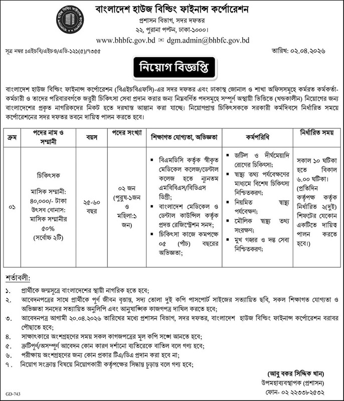 Bangladesh House Building Finance Corporation Job Circular -bhbfc.gov.bd