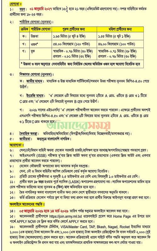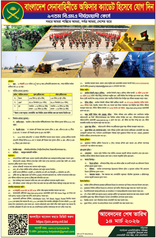 The official website www.army.mil.bd 2026 published BD Sena Bahini Job Circular 2026 via joinbangladesharmy.mil.bd. join Bangladesh army declared that Only Bangladeshi eligible candidates encourage to apply for Bangladesh Army Sainik recruitment. Anyway, here you will get all the information about this Bangladesh Army job circular 2026.