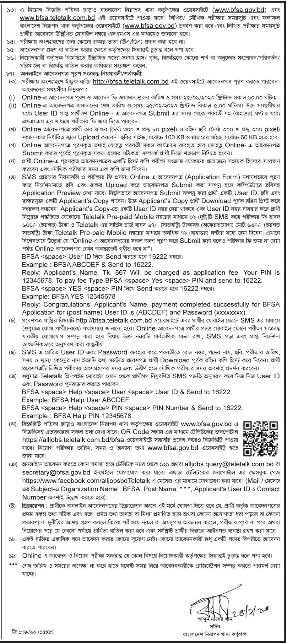 To summarize My dear visitor thanks for staying the BFSA Teletalk application 2023. Bangladesh all kinds of Teletalk application online apply process, BFSA exam date, BFSA Admit card Download 2023. Bangladesh Food Safety Authority relate all post on my site Ejobsresults.com