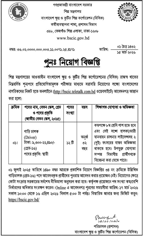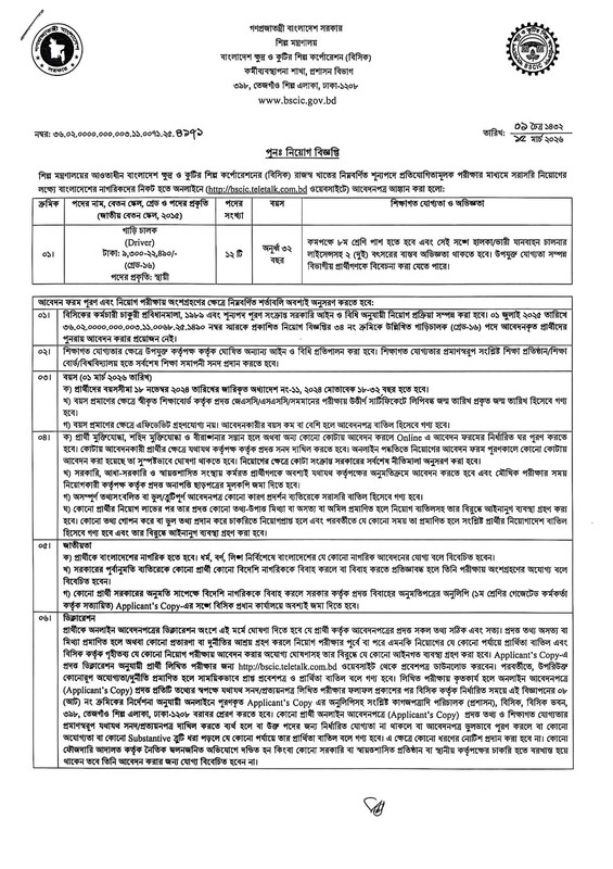Read the details of the BSCIC job circular 2026 carefully. All the BSCIC requirements and qualifications are mentioned in the circular before applying for the BSCIC job online application.