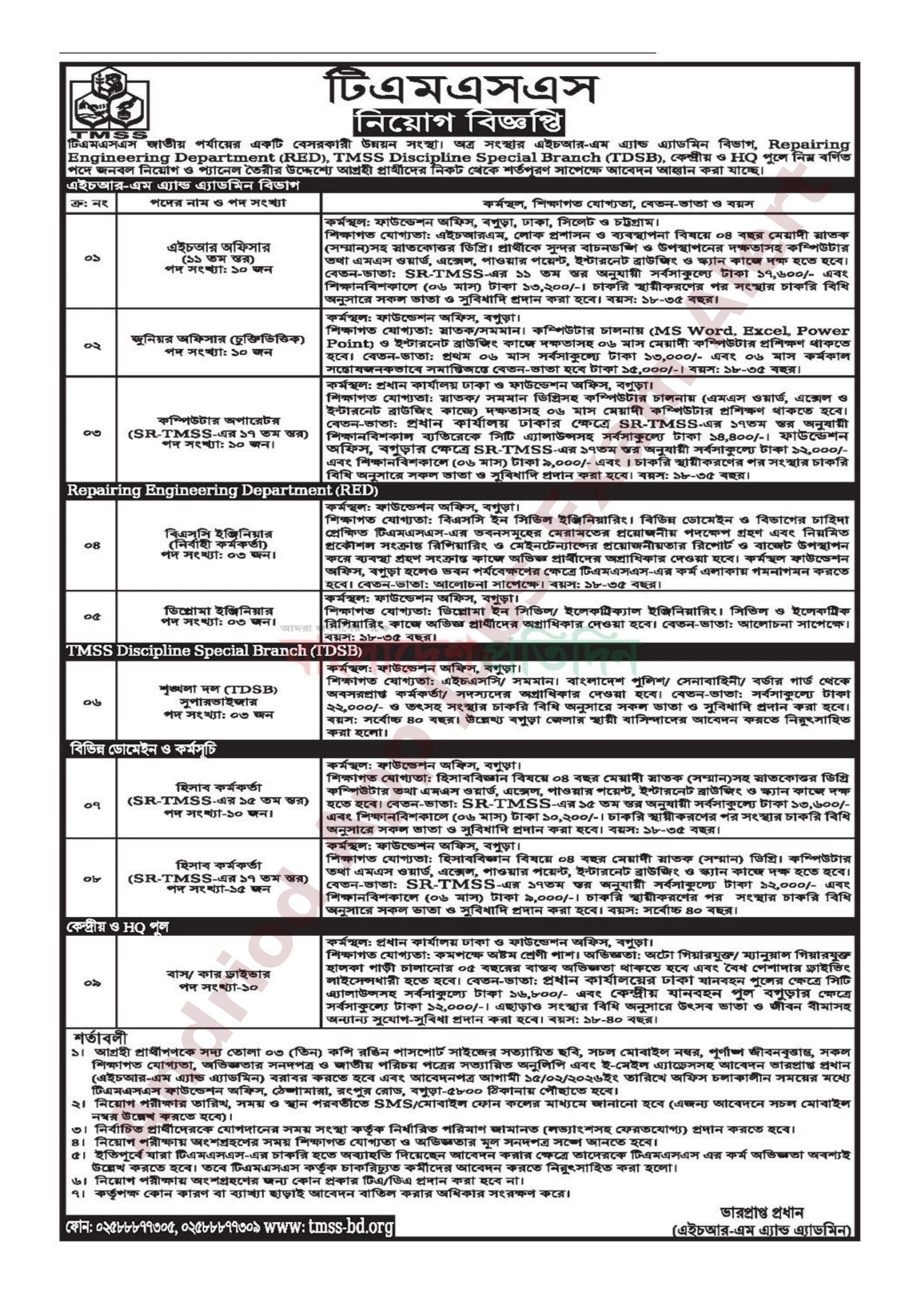 TMSS has published a new job circular for 2026. The organization has posted the latest job vacancy image file with full details. Only eligible and qualified candidates can apply for the available positions. Interested applicants should carefully read the job circular image to know the application process, deadline, and requirements.