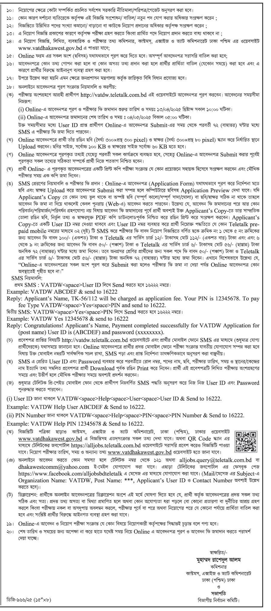 Online Apply Link: https://vatdw.teletalk.com.bd