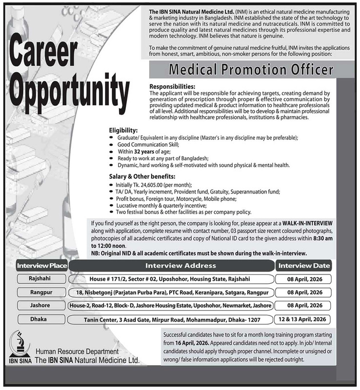 At present, Ibnesina has published a popular medical company job circular. Candidates must have a medical or related education to apply for this job. Interested applicants should read the full circular image carefully. The circular shows the job requirements and other important details. If you meet the qualifications, you can apply after checking all information.