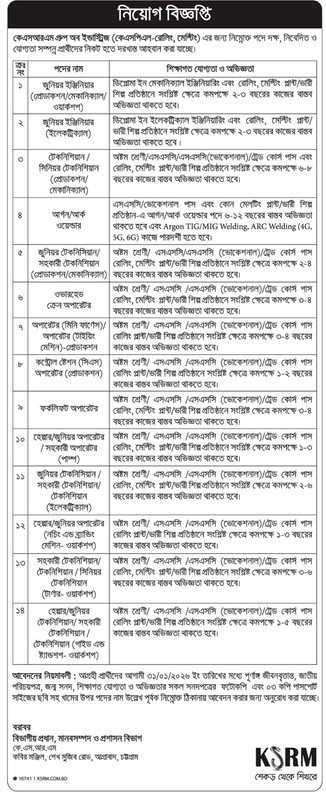 Now KSRM job candidates are requested to complete full-fledged life, 1 copy of passport size photograph, photocopy of national identity card, within KSRM jobs Before Deadline. Encourage candidates to send their CV with experience record along with this bellow the email address. Must specify the name of the post. Otherwise, the application is considered canceled by KSRM Authority. To for apply, these jobs Send your CV to career@ksrm.com.bd