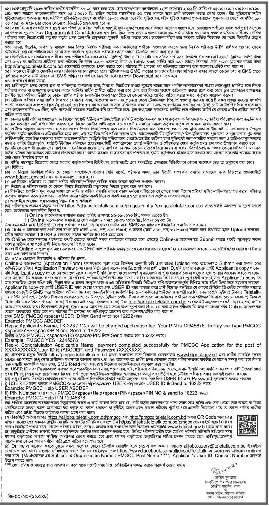 PMGCC teletalk com bd online application 2023