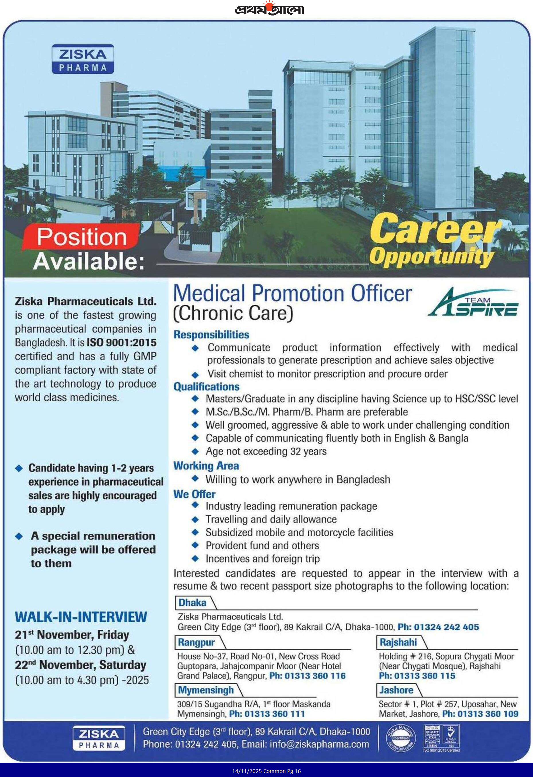 Ziska Pharmaceuticals Limited Job Circular 2025